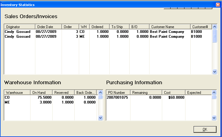 This program may be accessed from Order/Invoice Entry while entering a line item either by pressing the Details button or when an Insufficient Quantity message is shown and Yes is clicked.