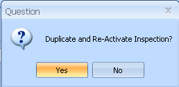 Click Yes to copy the inspection and move the copy to the Inspection Master.
