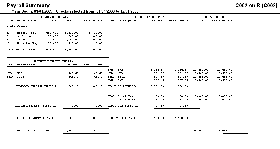 This program will generate a payroll check register. This is the same report program that is pulled up after posting payroll to print out the payroll check register.