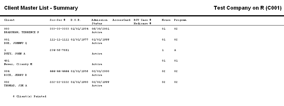 This program will generate a list of consumers/clients, within the selection parameters, that have been entered into the Client Master.