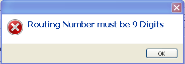 If 9 digits are not entered the following message will be displayed when the file is saved, click OK and correct the routing number: