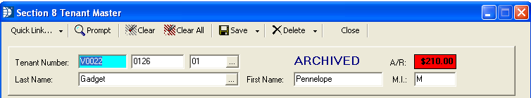 The copy of the tenant's information will open and will be marked as "Archived" in the header (see illustration below)