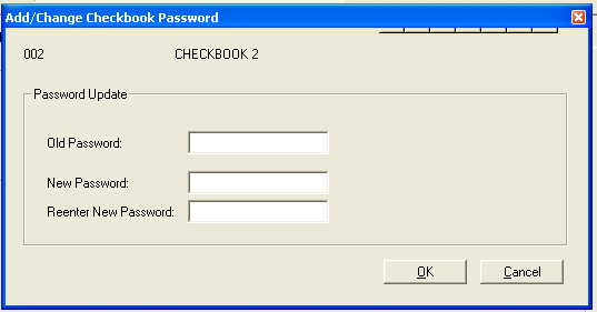 Note: The same check book master is shown in the Payroll, Financial and some Housing modules. Any changes made in one of those programs to a checkbook, will be in the other.