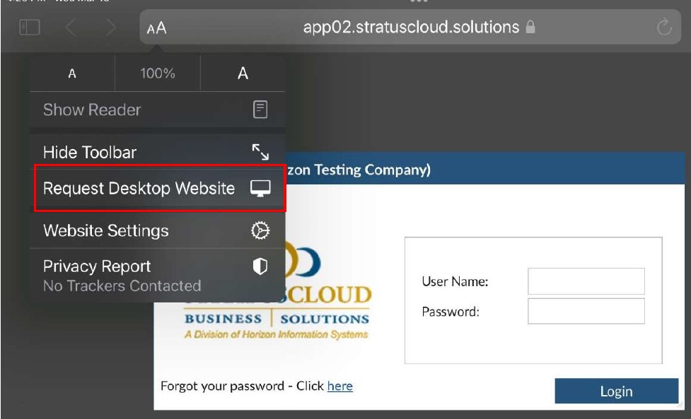 The Stratus Solution can be used a tablet and mobile devices. On some tablets, there is a Desktop Site setting that needs turned on to use the app. If you are unable to enter services or documentation on a tablet, review the steps below. If the questions are not showing in Documentation Entry, turn on Desktop Mode on your device.