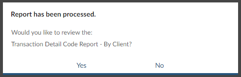 - When the report is completed, a prompt will appear noting "Report has been processed. Would you like to review the XXREPORT NAMEXX?