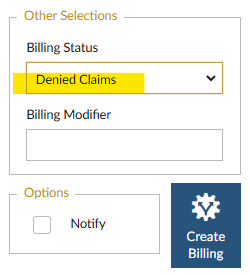 REMEMBER: Denied claims can be quickly rebilled by selecting “Denied Claims” during the billing process.