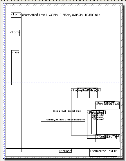 Layout view shows the "objects" that have been placed into the form or letter. The information in the objects is not visible.
