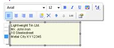 Use the control icons along the far left side of the edit layout or use the menus at the top of the page to insert text and objects onto the form/letter. The controls are explained below in the order the icons are displayed.