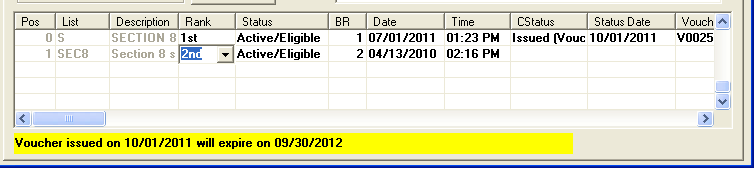 Displays the applicant's preference for each waiting list. Click on the word Rank (header) to activate a drop down arrow and select an appropriate ranking from the list of the following: