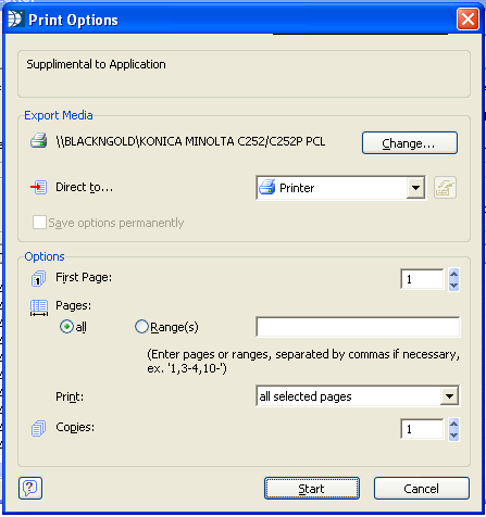 Export media shows the printer that will print out the letters. Click the Change... button to select a different printer.